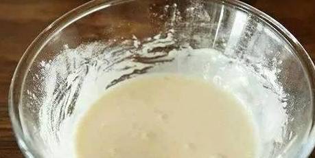 步骤二、准备一个稍微大一点的容器倒入50克的玉米淀粉、50克的清水,然后打碎一个鸡蛋,去掉蛋黄留下蛋清放进去一起混合搅拌均匀,搅拌均匀后就会成淀粉糊,然后把腌制的肉条倒入淀粉糊里搅拌,直到使肉条都均匀的挂上淀粉糊待用。