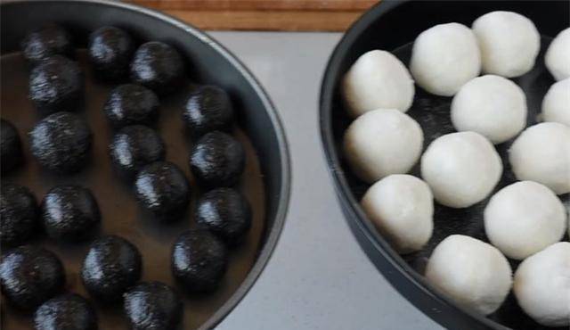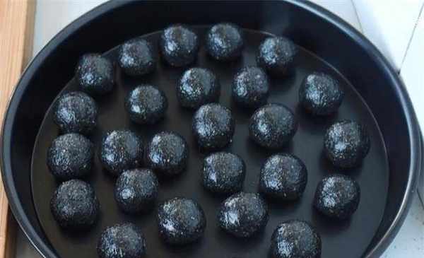 7.一个小时后,将芝麻馅做成同样大小的球。这一步有点费时间。