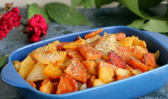 但是那道菜只有烤肠,显得比较单调,那就加一些自己的创造。添加了大家都喜欢的土豆和洋葱,在尝试加一些西式的香料,味道竟然是出奇的棒。这道菜做好以后,看起来有点节日的气氛,其实还有西方的元素在里面。看起来丰盛,做起来并不难,这样能让平常的日子变得有仪式感,这才是懂生活的人。