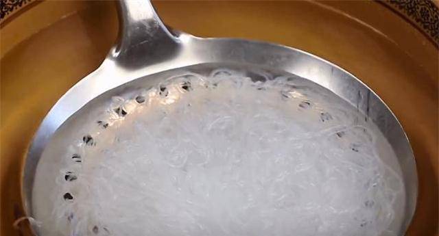 5、将事先泡好的粉丝放入锅中煮熟,然后过冷水,防止粘在一起。