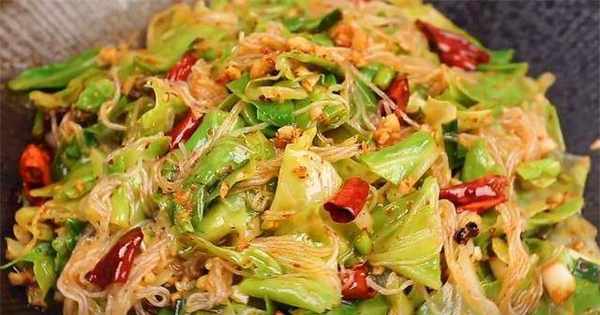 包菜、大蒜、葱花、干辣椒、辣椒粉、粉丝、食用油、花椒、盐、糖、生抽、熟醋