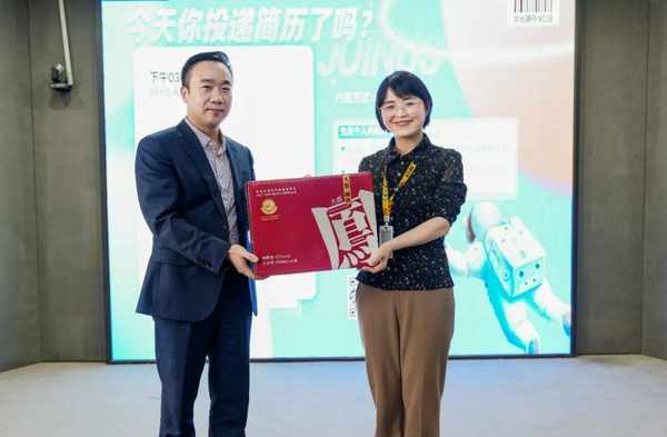 财务管理部总监刘道贵向直播基地负责人赠送柳林美酒