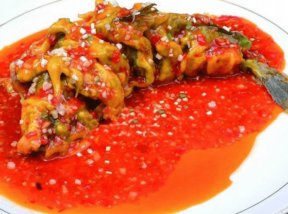 贵州人吃辣也很厉害,这里的人更喜欢吃酸辣的食物,就像这条糟辣鱼一样。