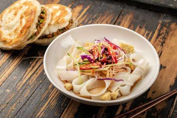 各种饼也是面食的主力。来俩肥瘦相间的肉夹馍,再配上碗凉皮,复方碳水美滋滋~