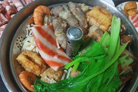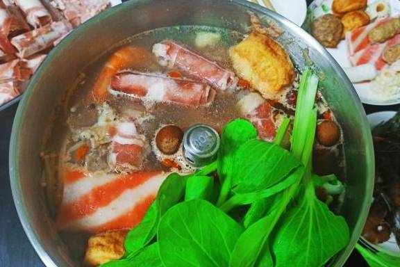 不知道吃火锅大家都喜欢什么汤底呢?是清汤还是骨汤或者番茄、麻辣、咖喱等等,婆婆最近上火的厉害,我特地买了骨汤的锅底来作为一个基层调味,水烧开之后就可以加入汤底,然后就可以先放一些比较难熟的火锅丸子之类的,说到火锅丸子当然少不了我心心念念的撒尿牛丸,也不知道是谁发明出来的简直太好吃了。又添加一些大虾、肥牛肥羊、金针菇、粉丝、还有自己家种的小蔬菜,这样一搭配起来也是属于营养均衡了吧。