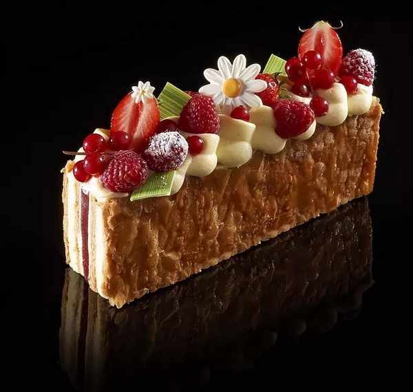 1、用鸡蛋和牛奶做卡斯达,过筛后与朗姆酒、巧克力榛果混合。