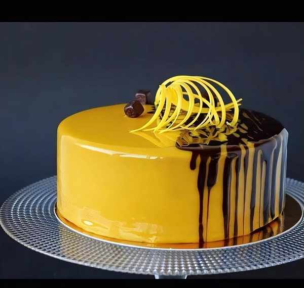 5、装饰:用1:1混合的巧克力和可可脂喷在蛋糕上,简单装饰或无须装饰亦可。