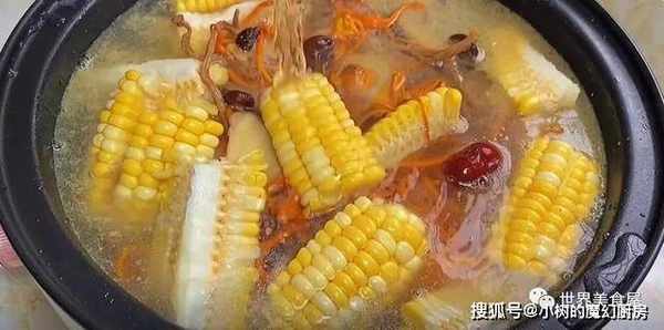 5、最后放入玉米,添加少许料酒,八分满清水。