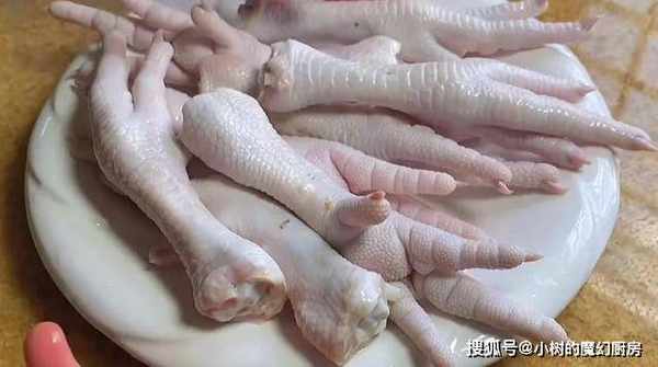 1、首先准备半斤鸡爪。将它清洗干净,剪掉指甲。