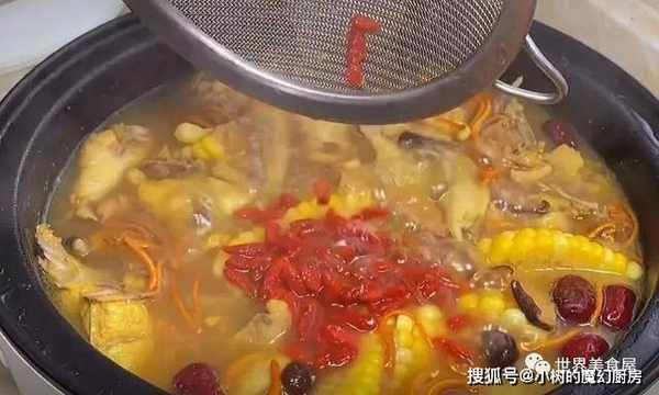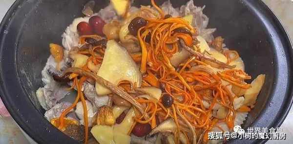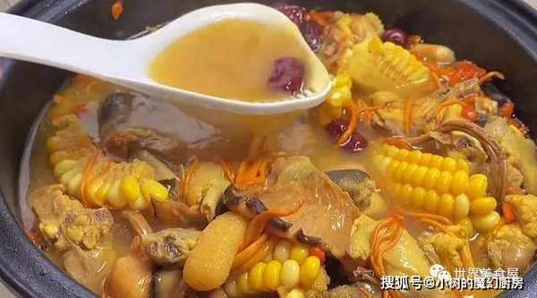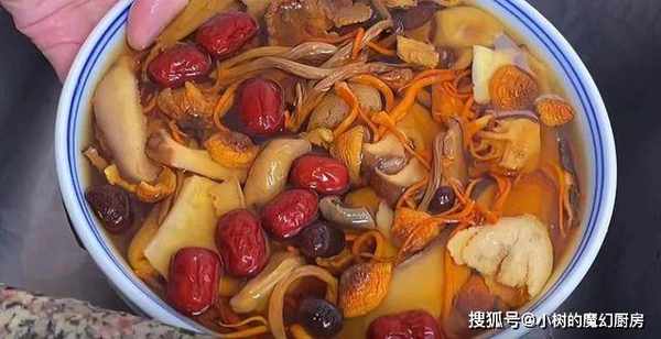 9、这道菌菇老鸡汤,汤水浓郁飘香,非常的滋补。菌菇含有多重氨基酸,配合母鸡炖汤,可以提高免疫力。