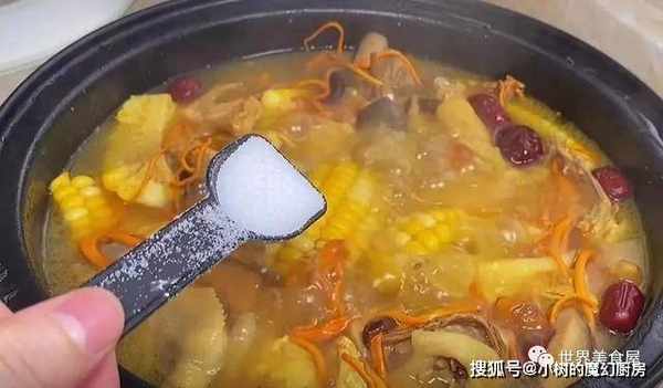 7、打开锅盖之后,加食盐,胡椒盐调味。