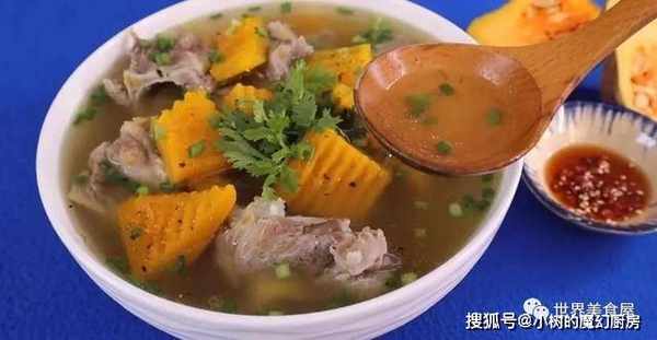 7、这道排骨南瓜汤,汤水鲜美清爽,没有多余的调料,喝起来原汁原味,鲜美中带点甜。南瓜可以健脾养胃,加上排骨一起炖汤,多喝提高免疫力,筋骨强壮。