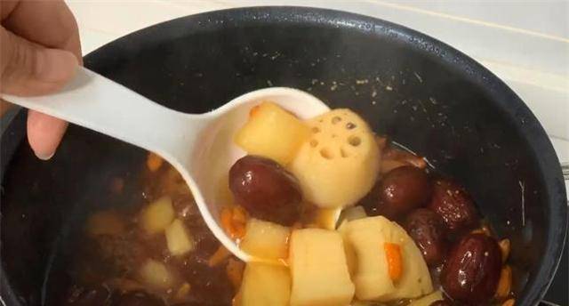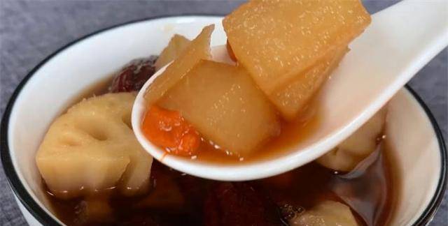 7、莲藕熬的汤补气血,味道很甘甜,还能养胃。非常适合这个季节。喜欢的话就在家试试吧。