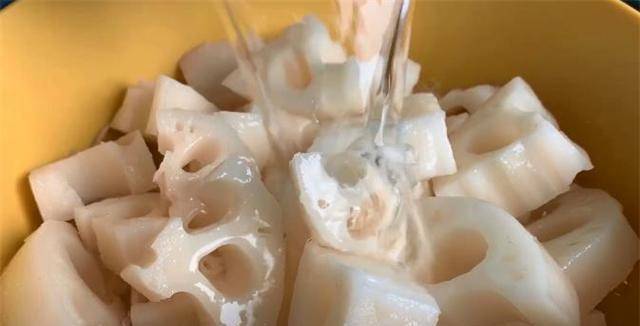 1、用小刀把莲藕的外皮刮掉。因为莲藕的皮很薄,刮掉就可以了。当所有的皮肤都经过处理后,将其切成约3厚的厚片。2厘米,然后将每块莲藕切开。之所以选择莲藕,是因为秋冬季节比较干燥,白色入肺。藕可以润肺,吃多了也不会酸。切好后放入盆中,加水泡藕。这样可以防止莲藕氧化变黑。