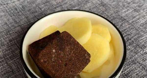4、再准备一片姜,去皮切片,盛入碗中待用,准备两片老糖。现在所有的原料都准备好了。
