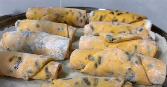 11.是时候灭火了。此时,南瓜卷正冒着热气。打开看看。颜色很吸引人,闻起来很香。有浓郁的红豆和南瓜香气。去掉它。
