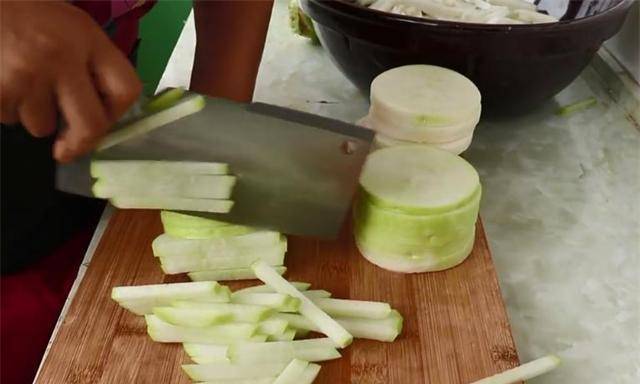 1、我今天有20斤左右的白萝卜。把白萝卜上的地洗干净,然后把头和尾都切掉,把所有的萝卜都切成稍粗的条,放入锅中。