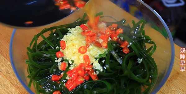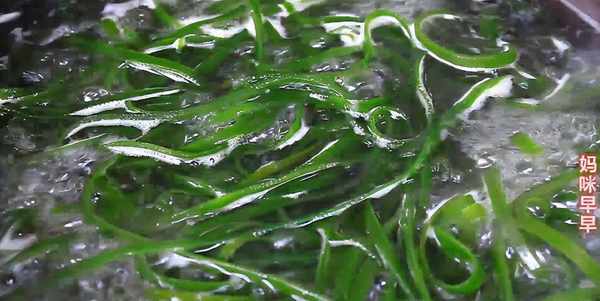 1、海带清水冲洗干净,锅里烧开水,将海带煮5分钟左右,煮的时候可以放一点油或者碱,这样煮出的海带更翠绿一些。