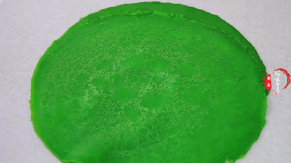 7,然后将山药泥放到菠菜饼上面,用勺子抹均匀,可以稍微抹得厚一些,做出的成品比较漂亮,然后慢慢地将它卷起来,卷的稍微紧一些,最后切块装盘就可以了。