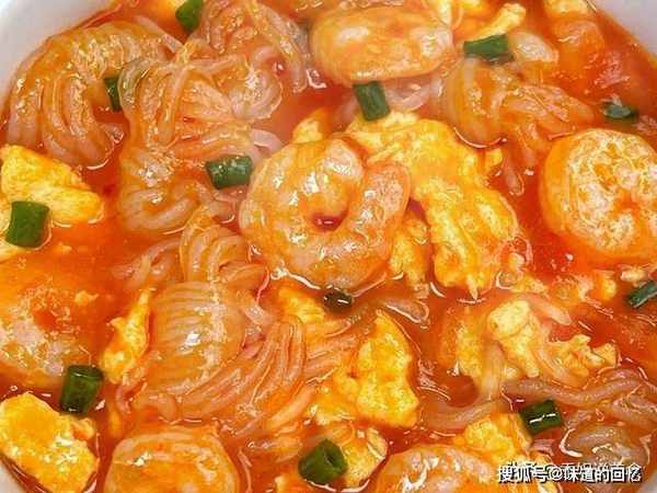 番茄,魔芋,虾仁,鸡蛋,葱花。