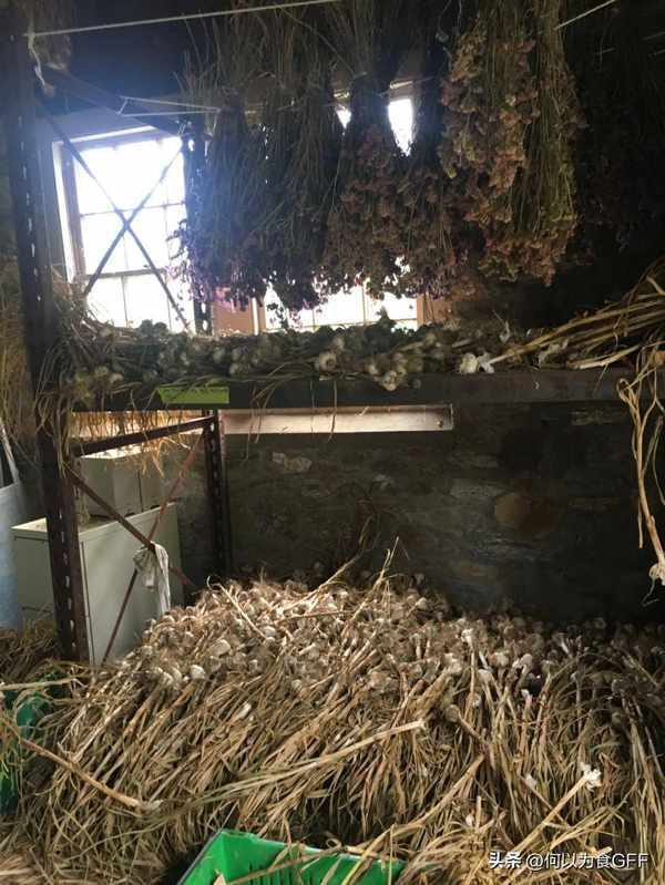 ■农场仓库里摆放、悬挂了各种刚收货的大蒜、干花
