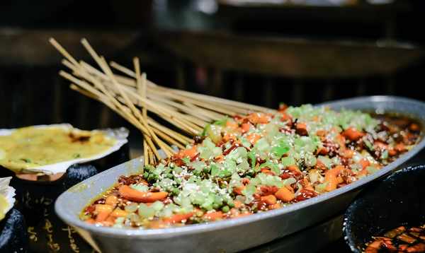 最后说说成都吃客的招牌菜:“特色烤鱼片”。每片鲜鱼片都用竹签扎好,整盘浸在红油里,表面撒上各种小菜和配料。吃起来辛辣刺激。如果觉得太辣,不妨咬一口盘中的菠萝。凤梨酸酸甜甜的味道立马解了鱼的辣味。几乎不可能停下来。