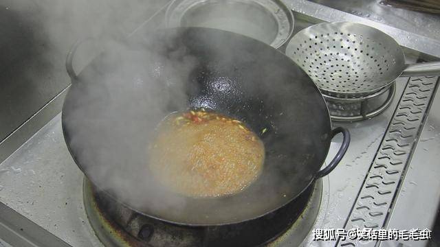 加入一点豆瓣酱快速翻炒出红油,淋入两勺清水,加入一点老抽提一下色。倒入