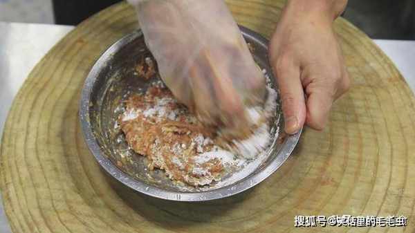 加入一点玉米淀粉,继续摔打肉馅。