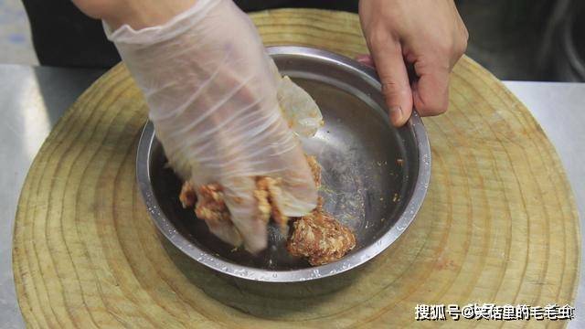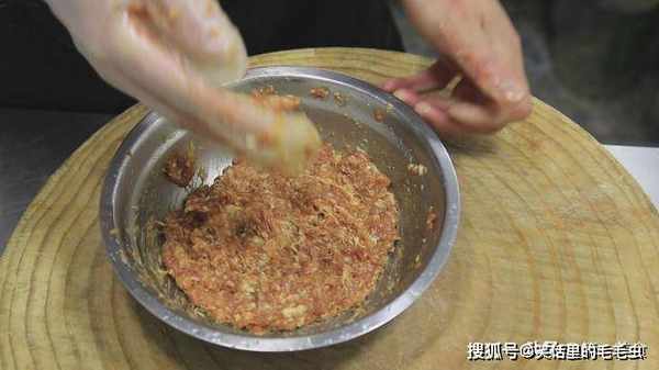 使调料吸进肉沫里面)。