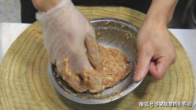 顺着一个方向继续摔打,使肉馅滑嫩。