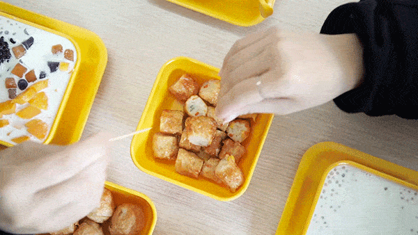 会爆浆的 芥末鸡柳棒、一粒粒的 香炸腐皮虾卷、一颗颗 Q弹墨鱼丸,搭配甜品快乐加倍!东西平价还好吃,下次还要再来!