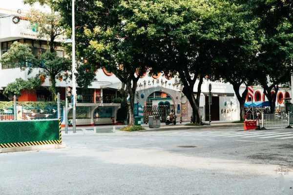 以蓝色为底色,画满了各式各样花朵的居民楼,是 花园二街的特色。这家 开了18年的「食百味」煲仔饭就藏在这条充满花朵元素的老街里