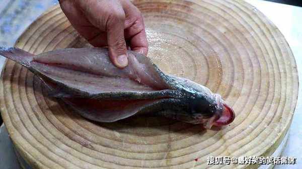 1.准备刮净鱼鳞的鲈鱼一条,去除内脏和鱼鳃,沿着脊骨把鱼背两侧切开,再在鱼身两面各划上几刀方便入味。