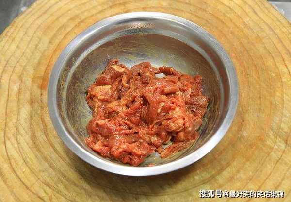1.准备牛里脊肉300克,顶着牛肉的纹理切成均匀薄片,牛肉切好之后放入盆中,加入食盐2克,鸡精1克,五香粉1克,料酒5克去腥,老抽2克提色,顺着一个方向搅拌至牛肉把料汁全部吸收,加入淀粉10克搅拌均匀,锁住牛肉中的水分,保持鲜嫩的口感,再加入植物油10克,拌匀腌制10分钟。