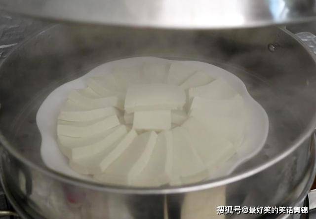 2.蒸锅中上大气以后,把豆腐放进去,中火蒸8分钟就可以了。