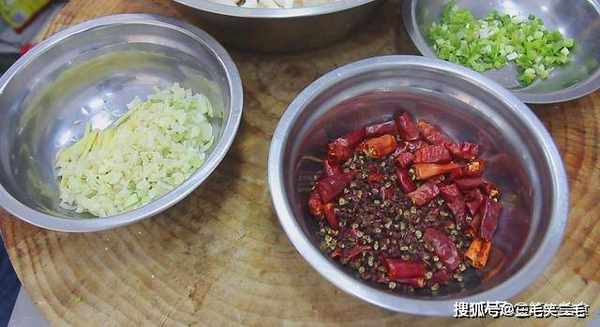 下面我们开始烹饪,锅内留底油,油热以后,放入葱姜蒜,翻炒出香味,倒入干辣椒和花椒翻炒一会。