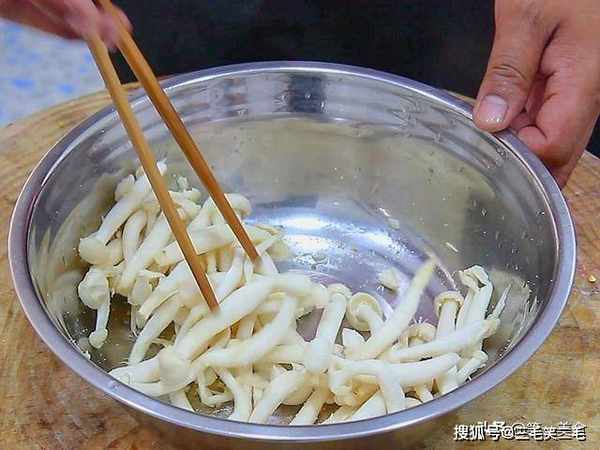 ,用筷子搅拌均匀,给白玉菇入一下底味,同时也杀一下白玉菇里面的水份。