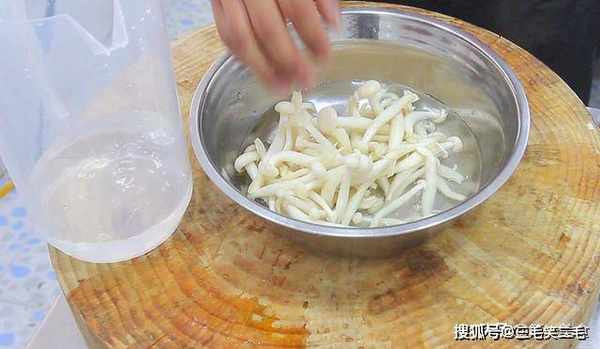在清洗干净的白玉菇上面撒上