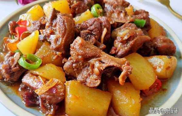 5、汤汁变浓,鸭肉软烂,放盐,放入土豆,再小火炖10分钟。