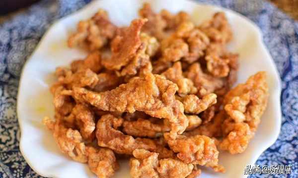 4、这个软甜度刚刚好!喜欢甜可以加番茄酱或者白糖,这个肉炸好之后,直接撒上椒盐和辣椒粉就是椒盐小酥肉的做法哦,赶紧来试试吧