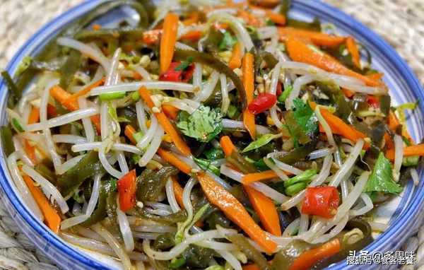 豆芽,海带丝,胡萝卜,蒜末,香菜,小米椒