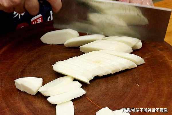铁棍山药削去外皮后清洗干净,斜刀切成片,放入锅中蒸15分钟。