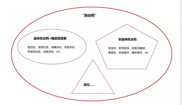 消炎藥也很好分辨,通常包括兩類,一類是激素,帶有松字,比如可的松、氫化可的松、地塞米松等;一類是常見的消炎止痛藥,如阿司匹林、布洛芬、美洛昔康等。
