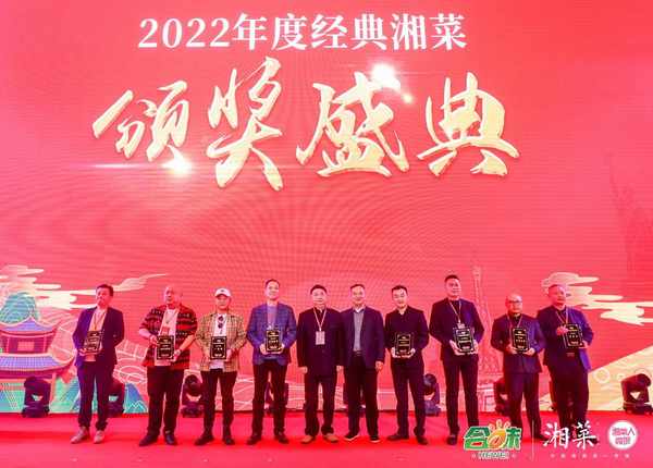 2022年度湘菜由湘菜泰斗王墨泉公布,湖南省商务服务中心党委书记、主任张军平,湖南省餐饮行业协会常务副会长任伟政为获奖企业授牌。