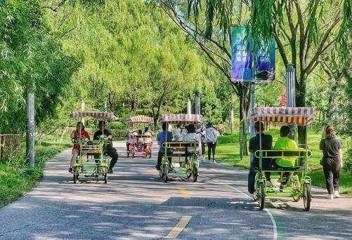 全程大约10公里,景区提供摆渡车,马车及电瓶车,双人自行车等服务。