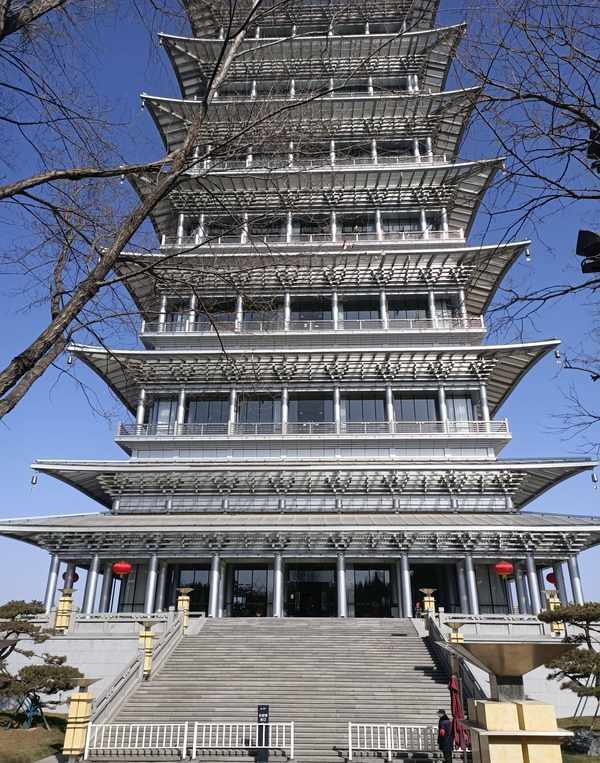 长安塔的外形看起来光亮、剔透,并充满了金感、现代感,塔的外形还是保留唐代传统木塔的特点,比如每层挑檐尺寸开阔上扬,体现唐代木结构建筑出檐深远的特色和风采,长安塔给人既高大又剔透的视觉感受,可谓是中西结合。