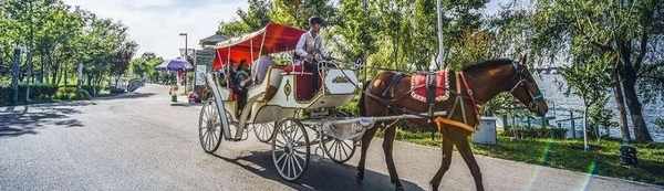 游世博园最快、最方便、最省力的方法是乘坐观光电瓶车、小火车或马车。车辆行程穿过西安世博园大部分经典景观,世博美景可尽收眼底。