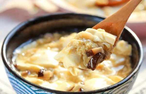 准备一块内酯豆腐,放入蒸锅蒸五分钟。将虾壳放入空碗中浸泡十分钟。泡好后换水洗净,去除一些咸味。