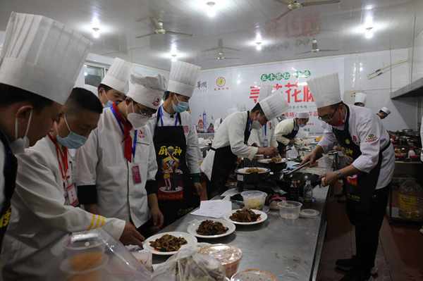 参赛选手从准备、制作、摆盘、送检、展示有条不紊,忙而不乱,闹中有静,精心制作;主考官认真核对,细而又细,不出差错;专家组围桌而坐,品评打分;展示大厅参观人员驻足观赏中华美食的美妙绝伦,为冀菜文化的独特魅力翘指点赞。