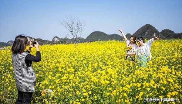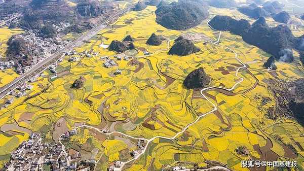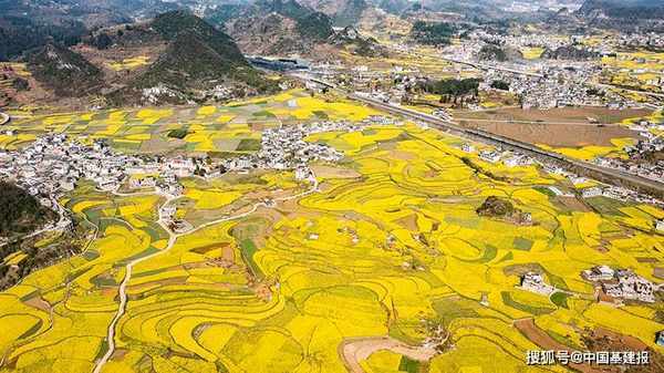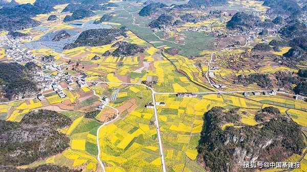 近日,贵州省六盘水市六枝特区木岗镇的16000余亩油菜花竞相绽放,与田地、民居、道路构成了美丽的春日画卷。 近年来,六枝特区大力丰富乡村旅游业态,带动农产品旅游消费,促进农旅融合发展,助力乡村振兴。(陶亮)
